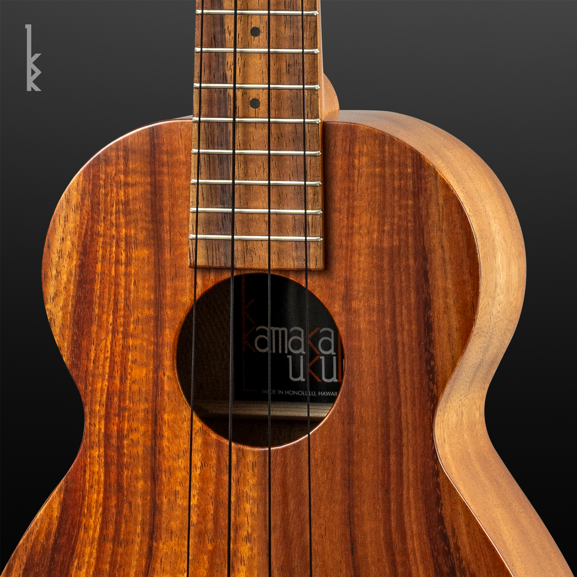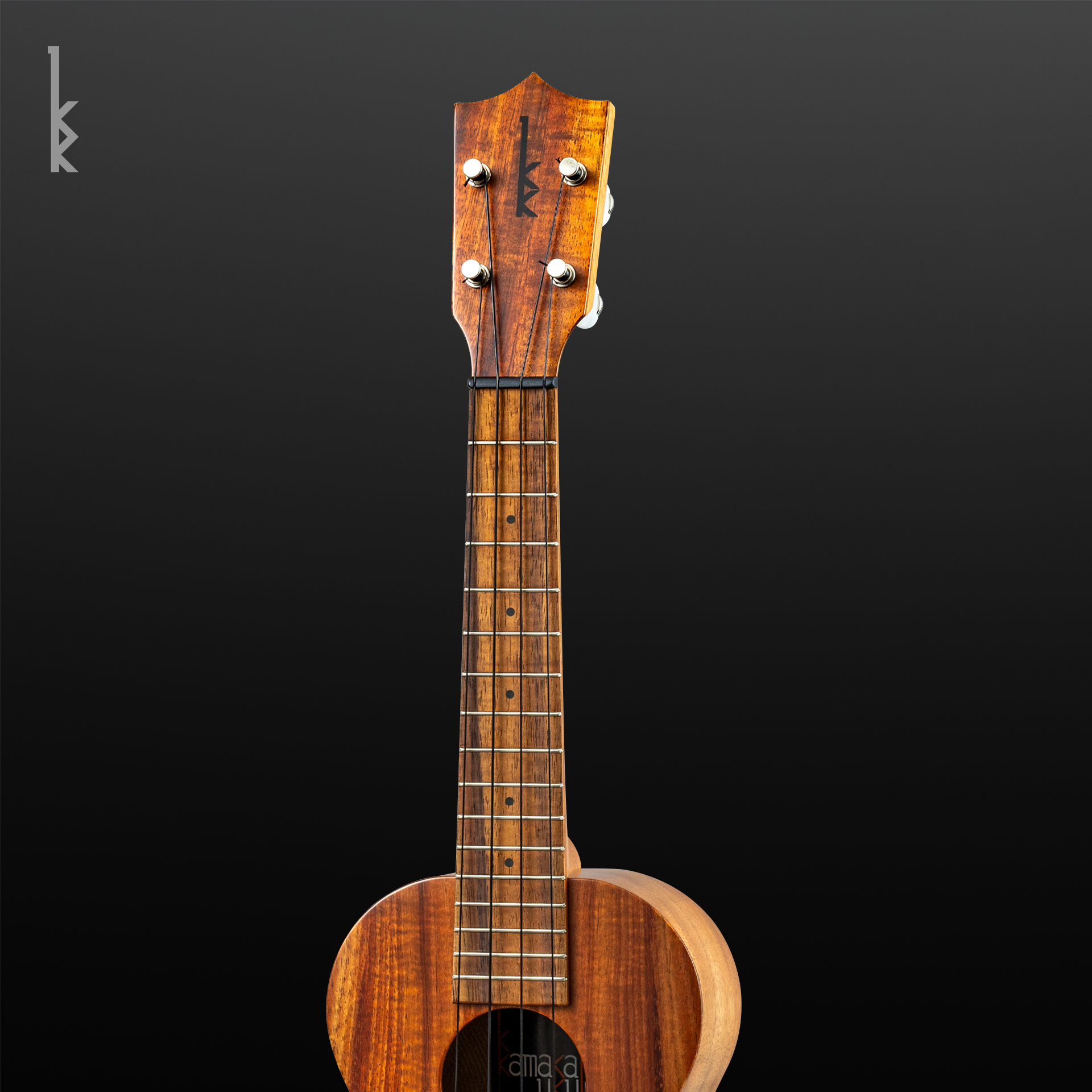 - An ebony inlaid KK logo, black position markers on the fretboard, and black Tusq nut and saddle. These touches distinguish the model with a clean, modern look while maintaining the quality materials expected of Kamaka.