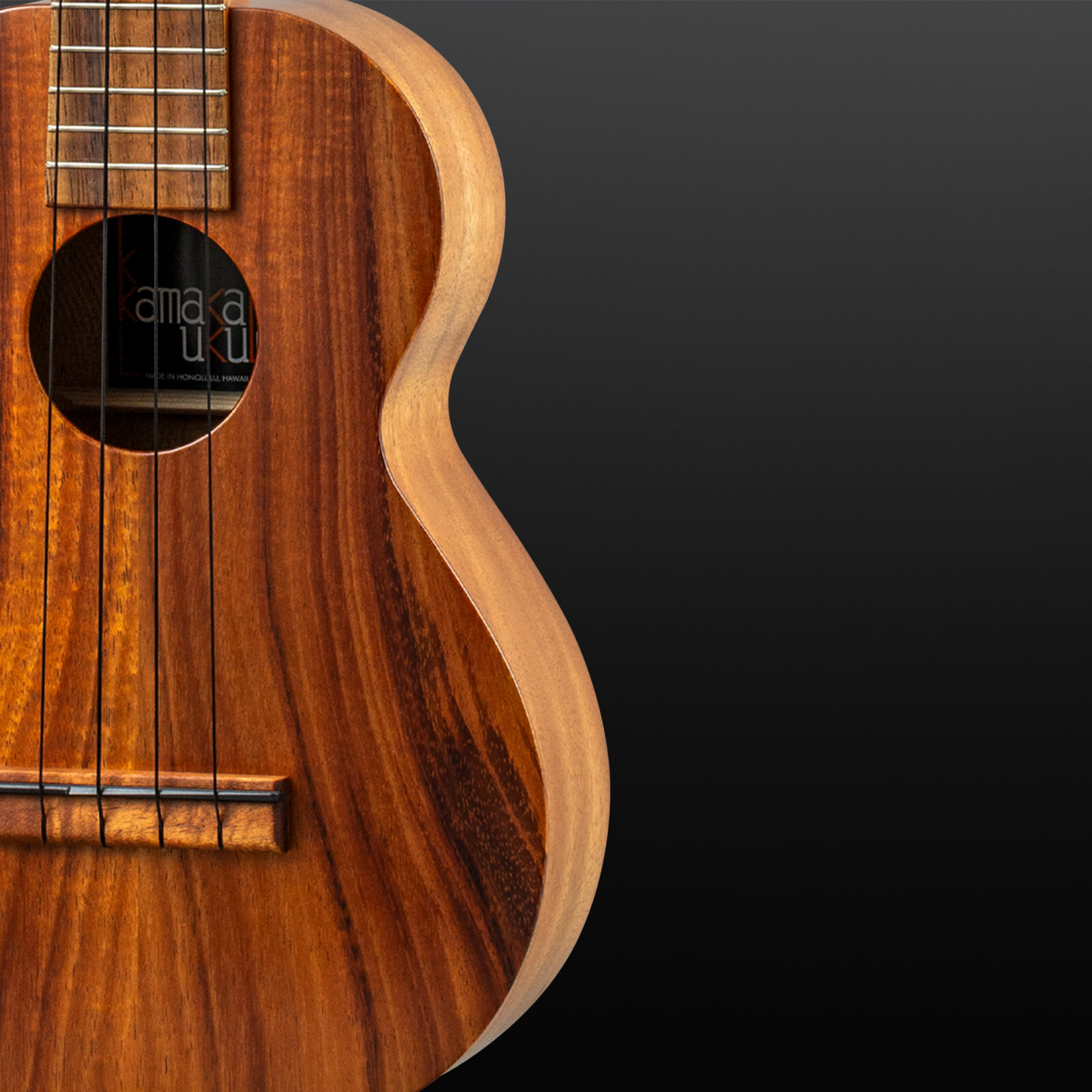 - An African mahogany neck paired with a Koa fretboard and bridge, precision-cut for accuracy, comfort, and long-lasting playability. These components create the familiar all-Koa appearance that has defined Kamaka instruments for decades.